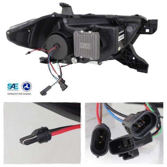 AKKON - Fits 2010 2011 2012 2013 2014 Ford Mustang Halogen Type LED Tube Projector Black Headlights Pair