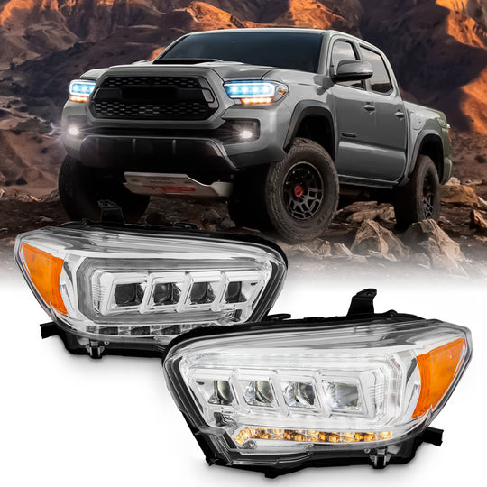 AKKON - Fit 2016-2023 Toyota Tacoma SR/SR5 [Halogen Type] w/Sequential Signal DRL Multi-Beam Projector Headlights Chrome Pair