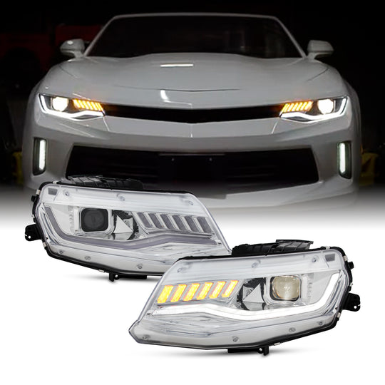 AKKON - Fit 2016-2018 Chevy Camaro Chrome [Halogen Type] LED DRL Projector Headlights w/Sequential Signal Driver+Passenger