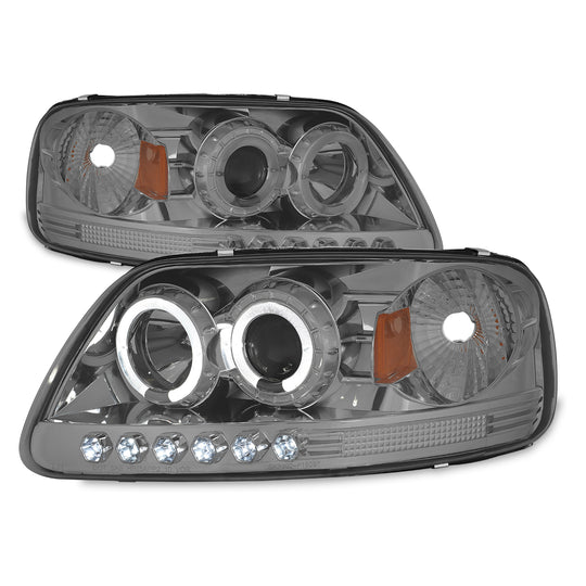AKKON - For Ford F150 Expedition Pickup Smoked Smoke Halo Ring LED 1 Piece Projector Replacement Headlights Pair
