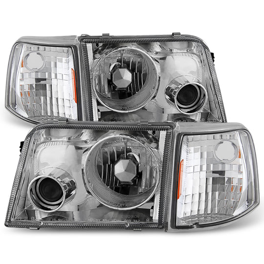 AKKON - For Ford Ranger Pickup Truck Chroem Clear Projector Headlights w/ Corner Signal Light Lamps Replacement