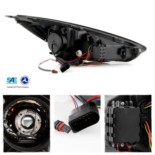 Regular price $388.99This is a 100% brand new pair of Replacement Headlights in Black Housing Clear Len Compatible With: 2015-2018 Ford Focus S | SE | ST | Titanium Halogen Headlight With LED Daytime Running Light ATTN: Compatible... -