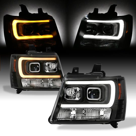 AKKON - Fits 2007-2013 Chevy Avalanche 2007-2014 Tahoe Suburban 1500 / 2500 C-Tube Projector Black Headlights Pair Left + Right