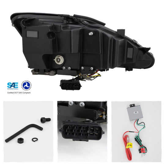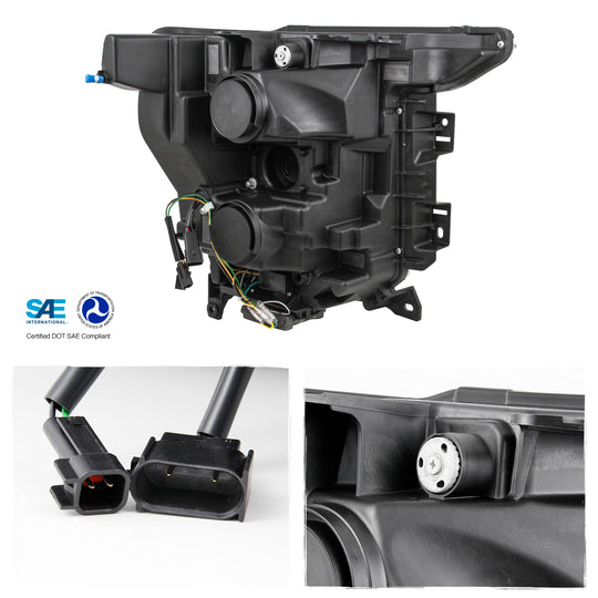 AKKON-Fit 2021-2023 Ford F150 Halogen Type LED Running Switchback Sequential Signal Quad Projector Black Headlights Pair