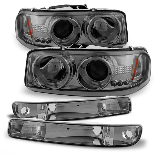 Fits 00-06 Sierra Yukon Smoked LED Projcetor Headlights + Bumper Signal Lamps