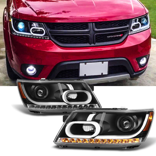 AKKON - For 2009-2020 Dodge Journey Replacement LED DRL Light Tube Black Projector Headlights Lamps