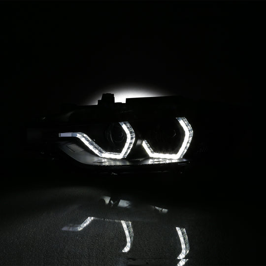 AKKON - For BMW F30 3-Series 4 Doors Sedan Black Smoked Factory Halogen Type Dual U-Halo Ring LED Projector Headlights