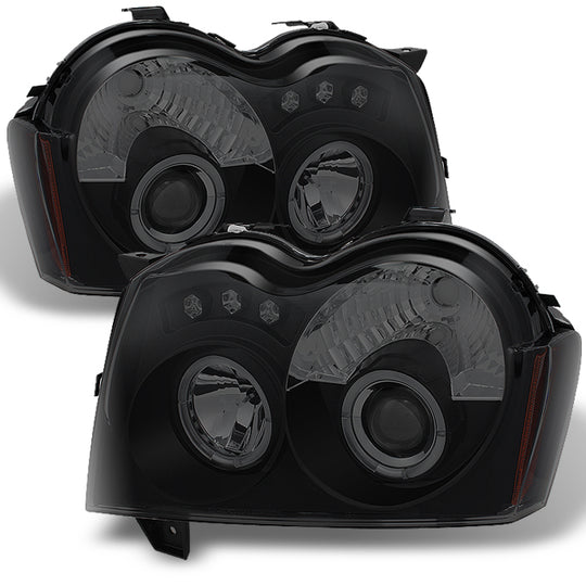AKKON - For Jeep Grand Cherokee Black Smoke Dual Halo Ring Projector LED Replacement Headlights LH/RH Head Lamps