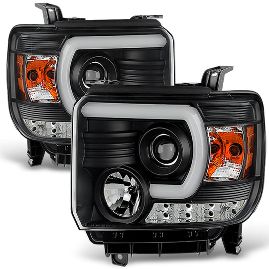AKKON - For GMC Sierra 1500/2500/3500 Pickup Black Bezel DRL LED Light Tube Projector Headlights Replacement