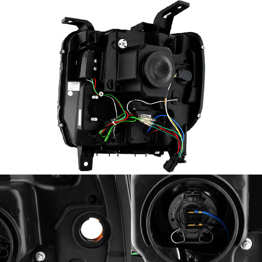 AKKON - Fits 2007-14 Chevy Tahoe Suburban 1500/2500 07-13 Avalanche Projector LED [C-Tube Bar] Black Headlights Pair Left+Right