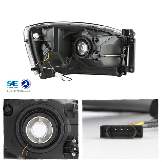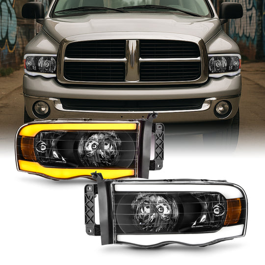 AKKON -Fits 2002-2005 Dodge Ram 1500/2500/3500 Black Headlight Pair w/LED Greeting Lamp Switchback DRL Sequential Signal
