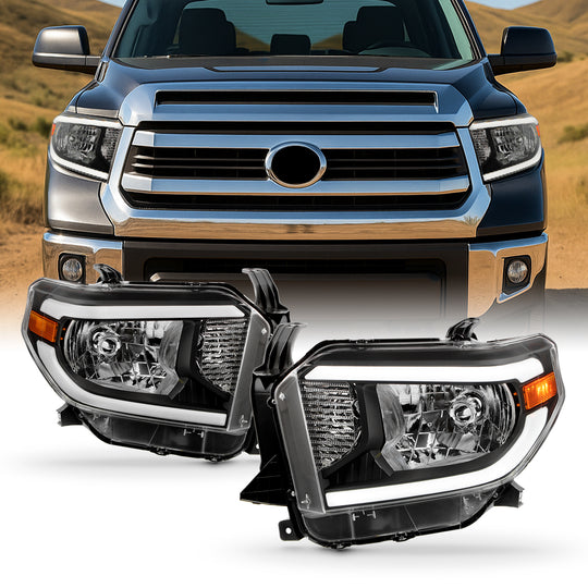 AKKON - Fits 2014-2020 Toyota Tundra Pickup Black Headlights Pair Driver & Passenger w/ LED Tube DRL Running Light
