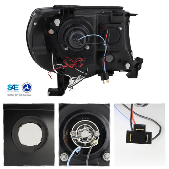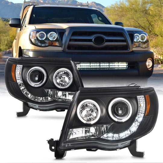 AKKON - For 05-11 Toyota Tacoma Pickup Black Bezel Dual Halo Ring Design Projector LED Replacement Headlights