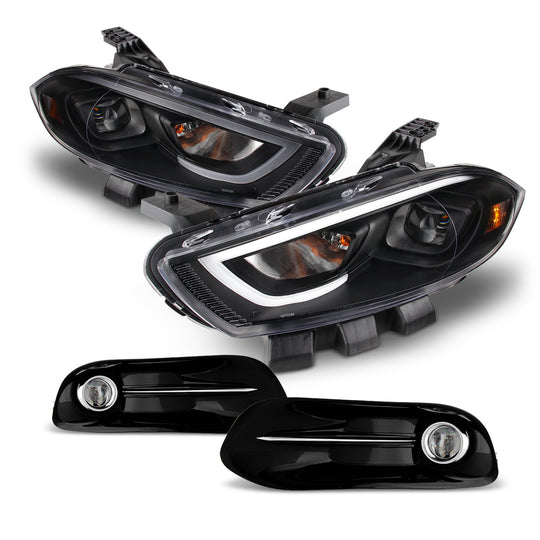 AKKON - For 2013-2015 Dodge Dart Black LED C-Tube Projector Headlights + Chrome Fog Lamps Combo