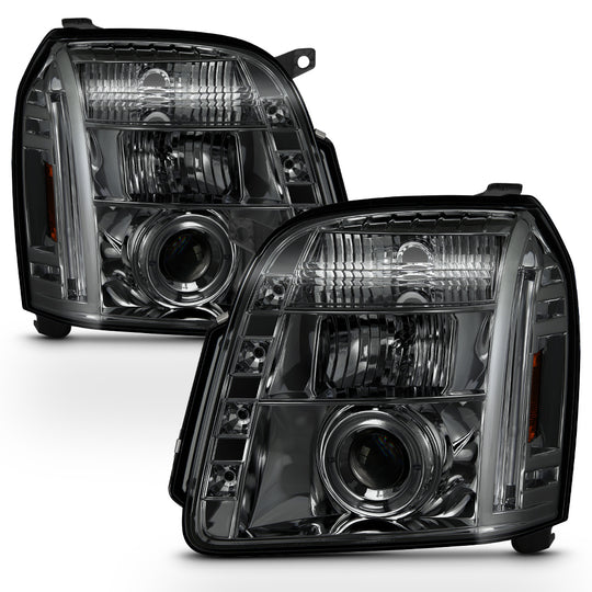 AKKON - For 2007-2014 GMC Yukon XL 1500 / XL 2500 Denali SUV Dual Halo LED Projector Smoked Headlights Front Lamps Pair