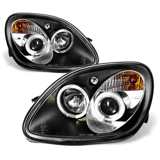 AKKON - Fits 1998-2004 Mercedes Benz R170 SLK-Class Black Bezel 1 Piece Halo Projector Headlights w/Corner Signal Lamps