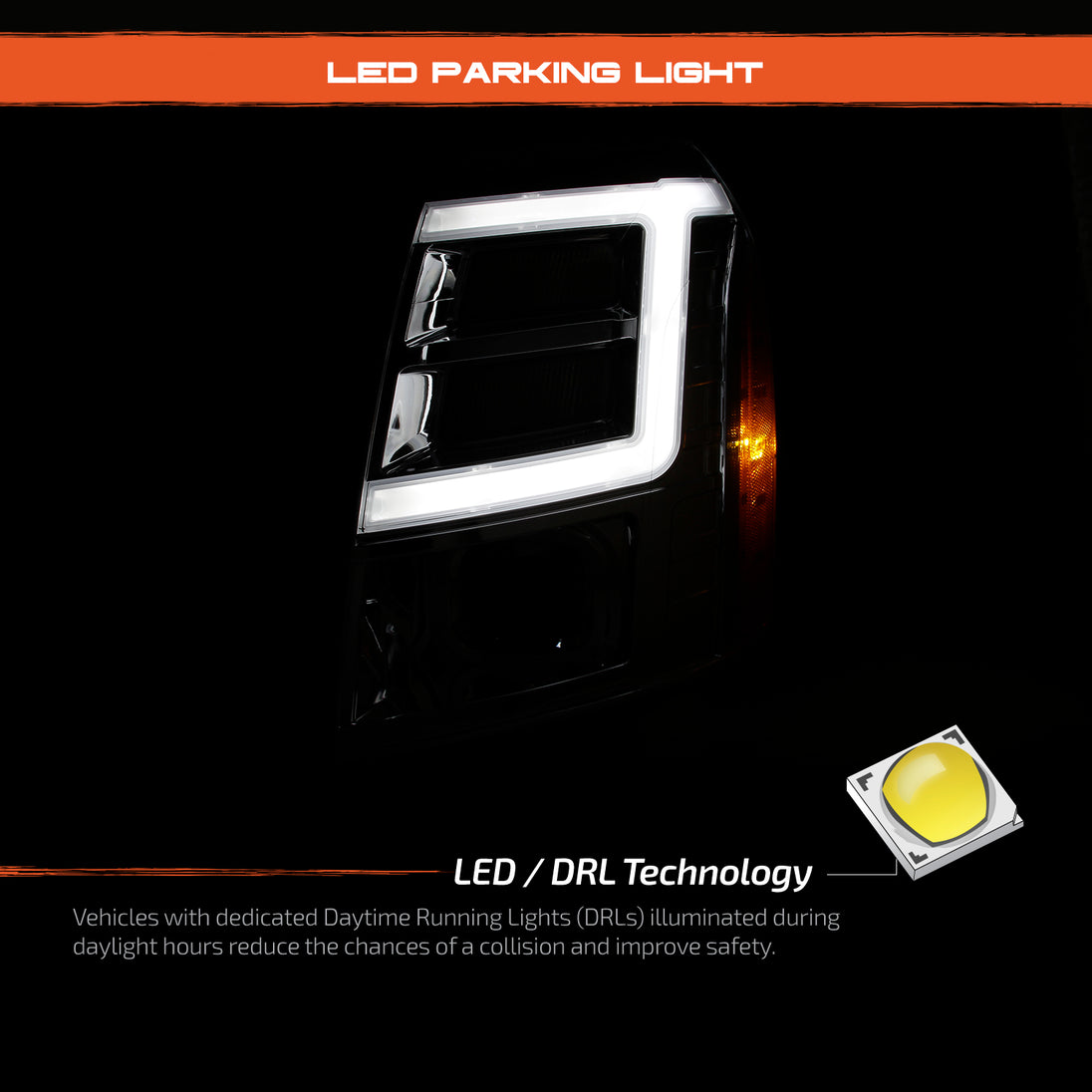 AKKON - For 2007-2014 Cadillac Escalade Xenon/HID Model Type Chrome Housing LED Daytime Running Light Tube Projector Headlight
