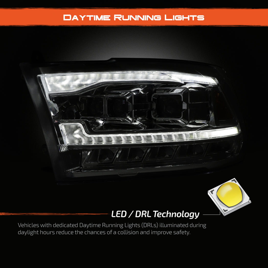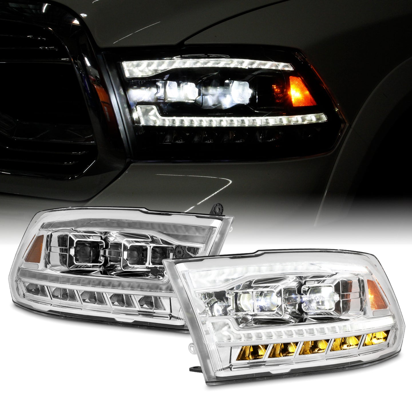 AKKON - [FULL LED High/Low] For 09-18 Dodge Ram 1500 2500 3500 Triple Projector Chrome Headlights w/ Sequential Turn Signal
