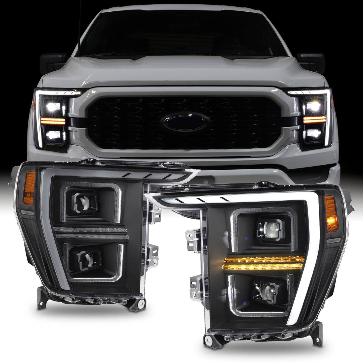 AKKON -Fit 2021-2023 Ford F150 LED DRL Sequential Signal [Halogen Type] Projector Black Headlights Pair Driver+Passenger