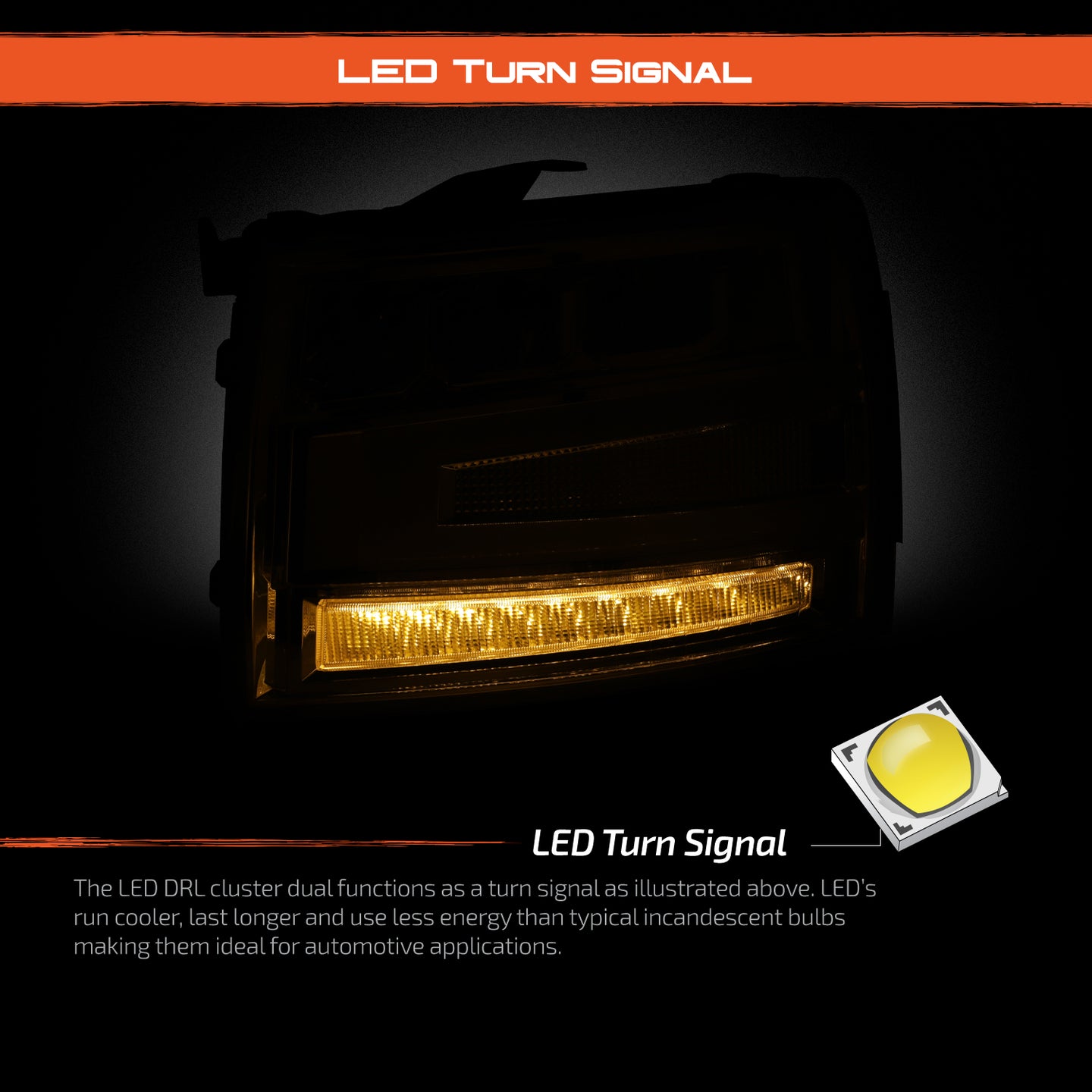 AKKON - Fits 2007-2013 Chevy Silverado 1500 2500HD 3500HD Projector Chrome Headlights Pair w/LED DRL Running Turn Signal