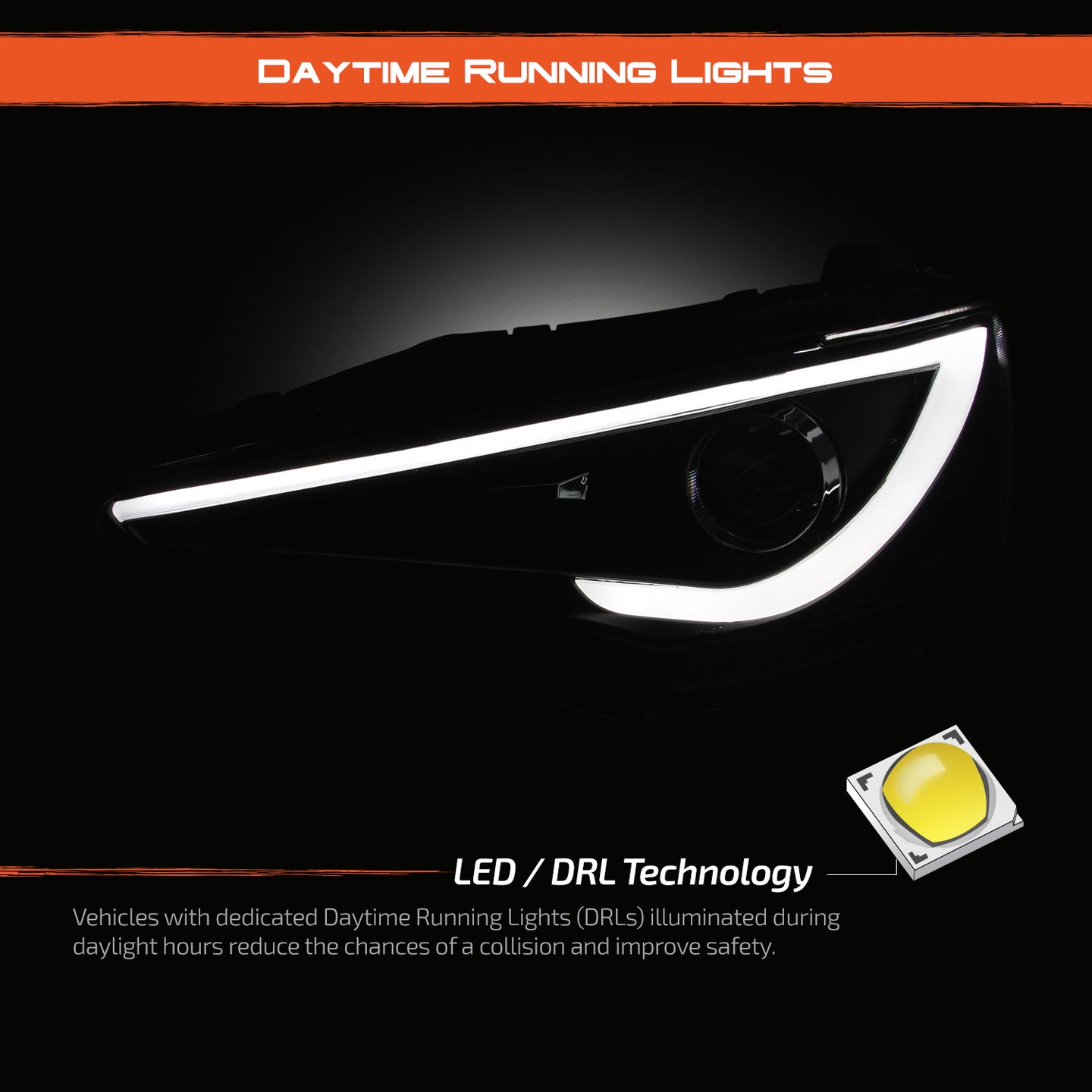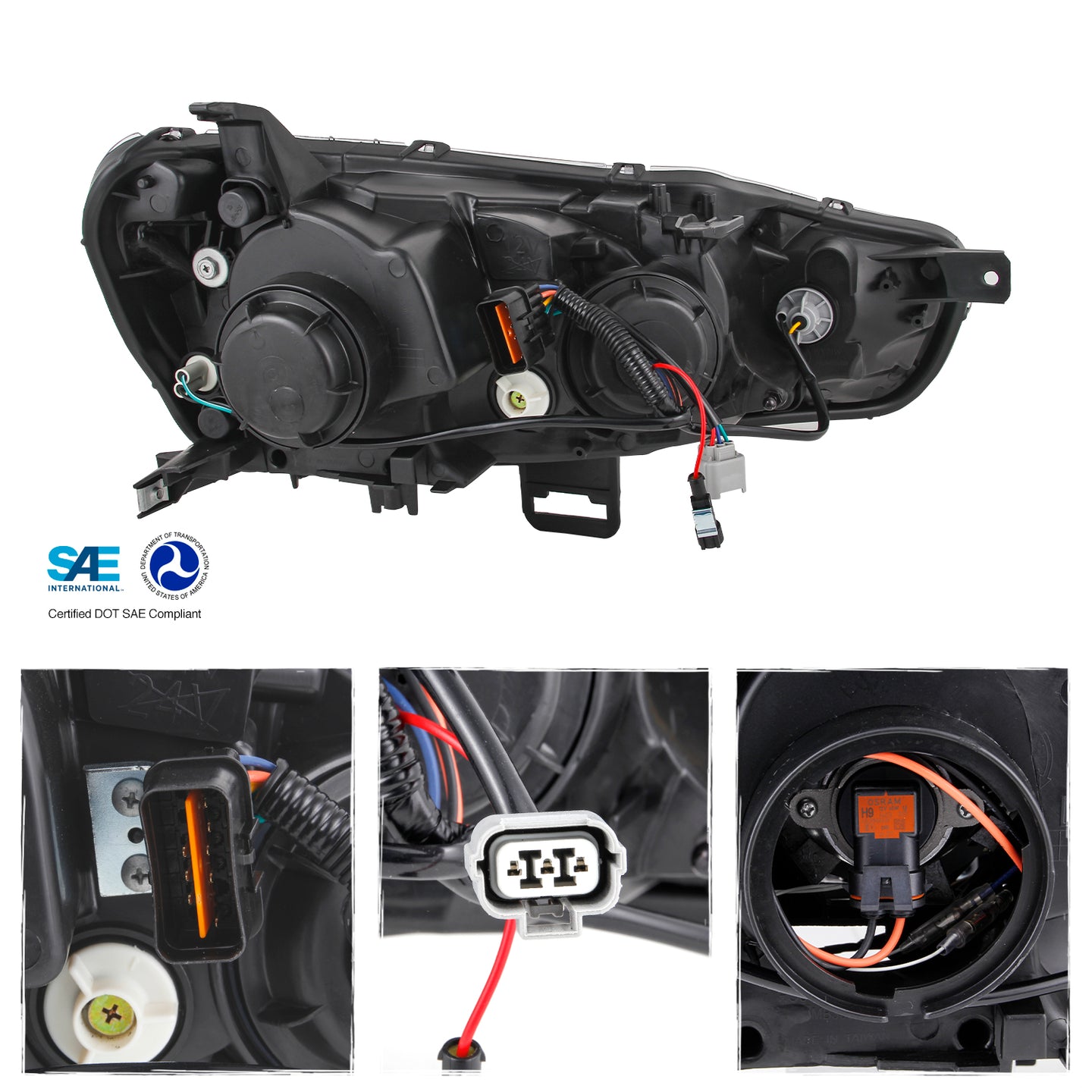 AKKON - Fits 2008-2017 Mitsubishi Lancer Evolution LED DRL Tube Sequential Signal Projector Black Headlights Pair LH+RH