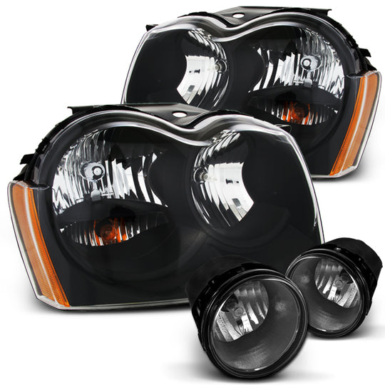 AKKON - For Jeep Grand Cherokee Replacement Headlights Driver/Passenger Black Head Lamps + Smoked Fog lights
