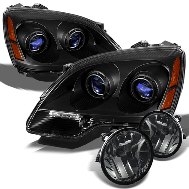 AKKON - For 2007-2012 GMC Acadia SUV [Halogen Type] Black Bezel Projector Headlights Pair + Smoked Bumper Fog Lights Combo