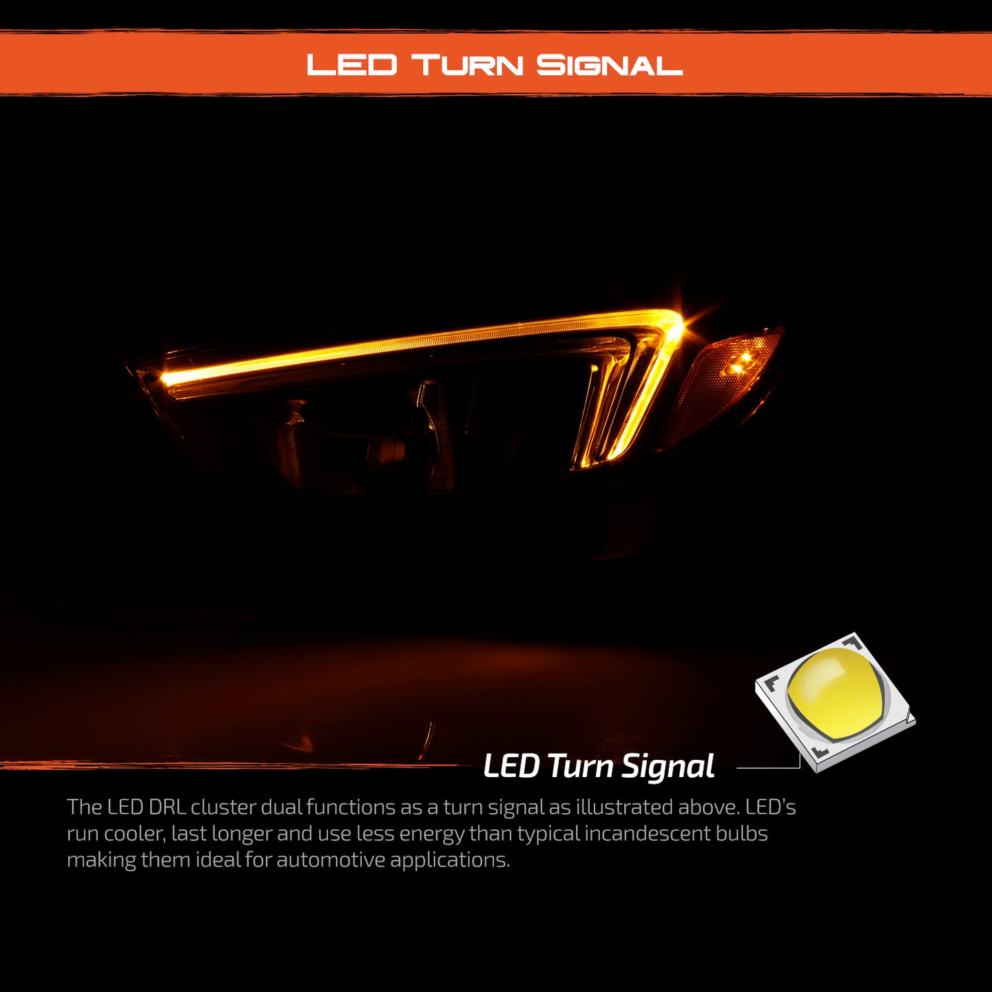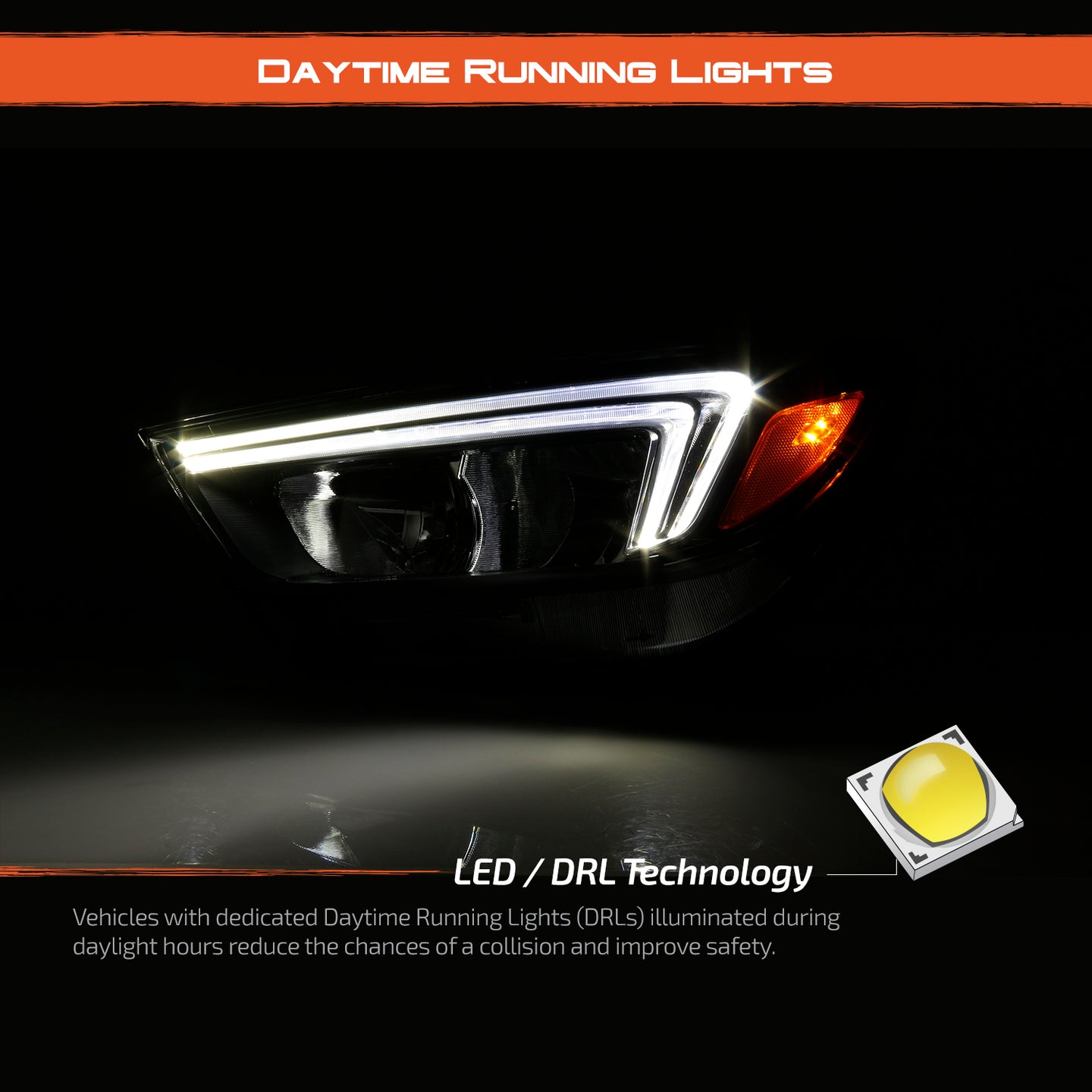 AKKON - For 2004-2008 Pontiac Grand Prix LED Light Tube DRL Black Housing Headlights w/ Ember Corner Lamps