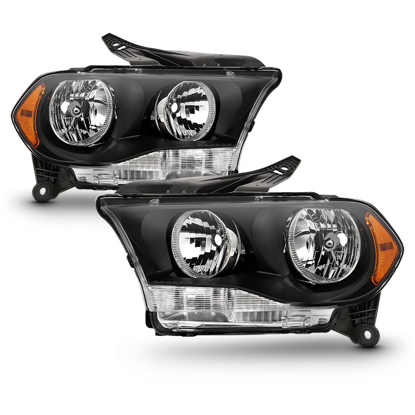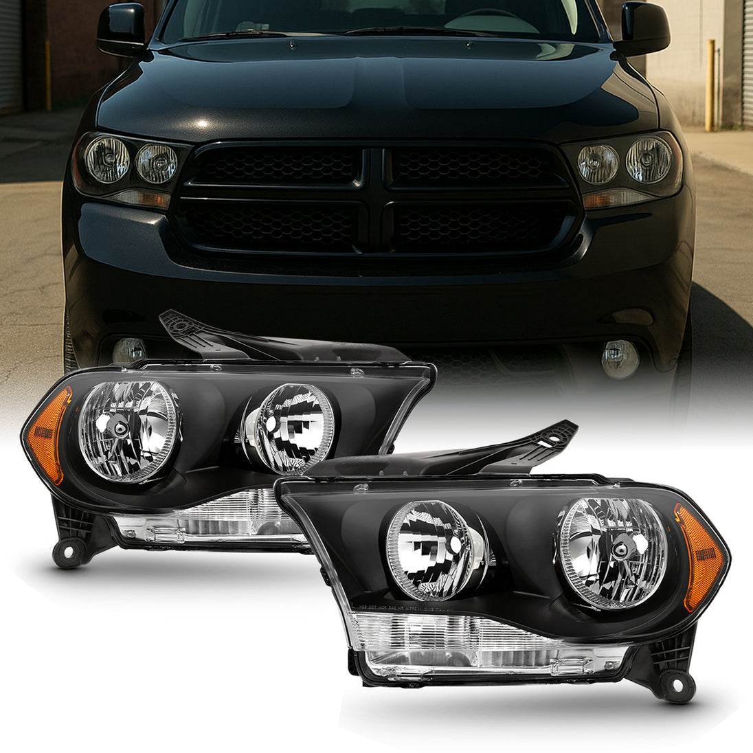 AKKON - Fits 2011 2012 2013 Dodge Durango Halogen Model Black Headlights Driver Left+Passenger Right Side Pair