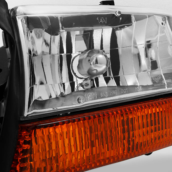 AKKON - Fits 1997-2004 Dodge Dakota | 98-03 Durango Chrome Driver Left + Passenger Right Side Headlights +Signal Lamp Pair Set