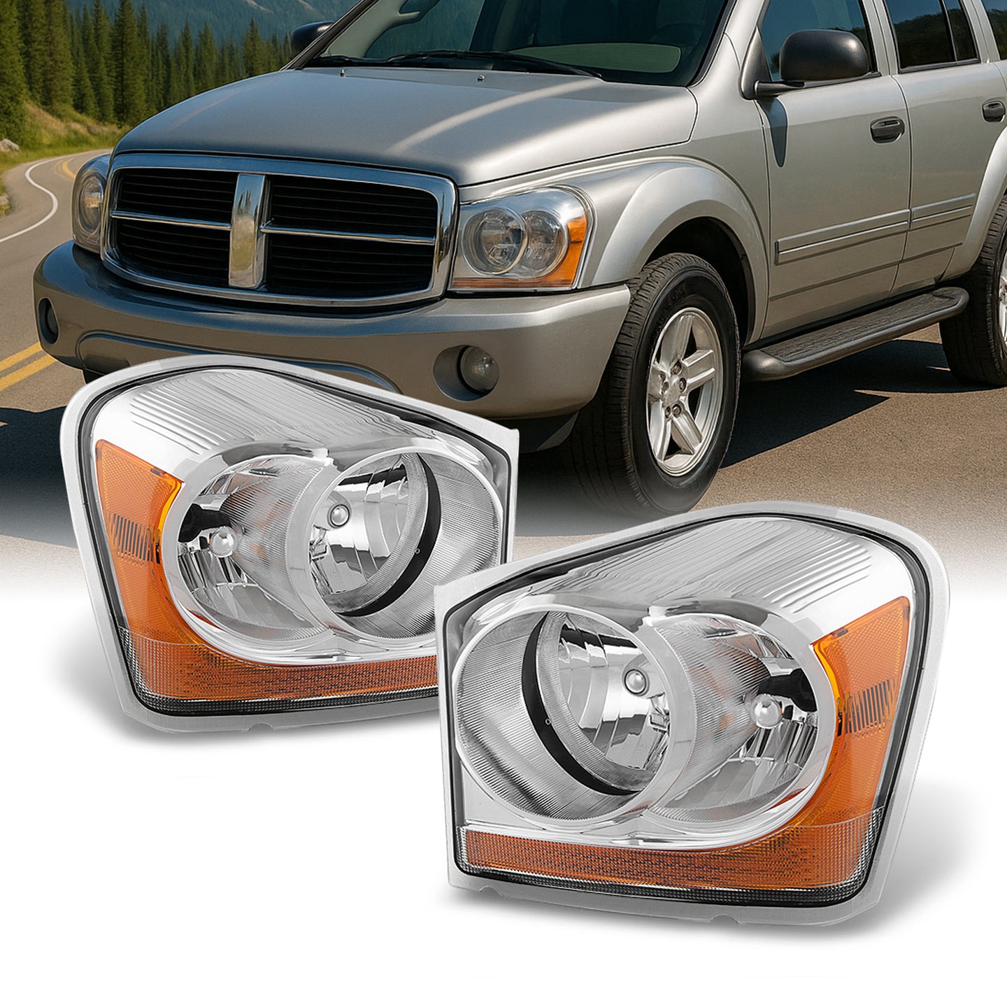 AKKON - For Dodge Durango OE Replacement Chrome Bezel Headlights Driver/Passenger Head Lamps Pair New