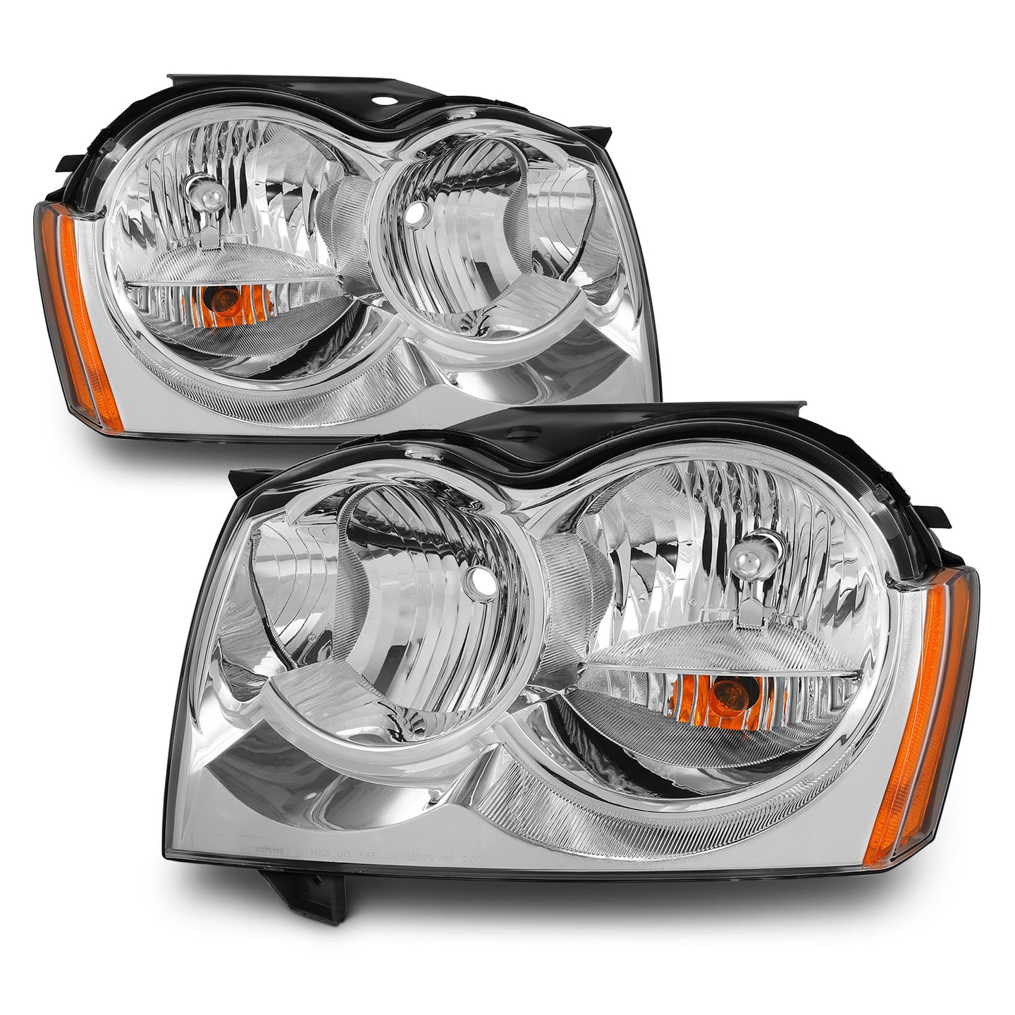 AKKON - For Jeep Grand Cherokee Replacement Headlights Driver/Passenger Chrome Head Lamps Pair New