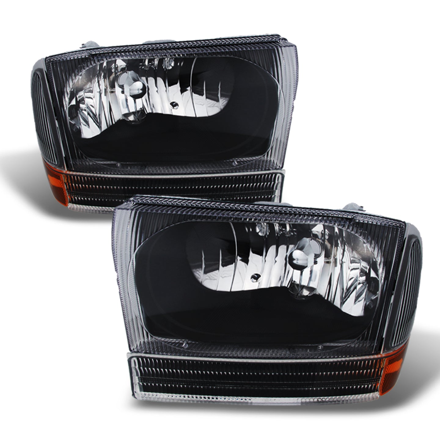 AKKON - Headlight For 99-04 Ford Excursion F250 F350 F450 F550 Superduty [OE Style] Black Housing Pair