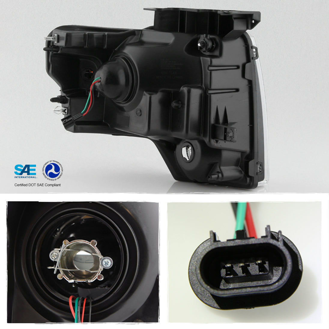 AKKON - For [HALOGEN UPGRADE] 2009 - 2014 Ford F-150 F150 Light Duty Pickup Truck Black Bazel Projector Headlights Pair Set