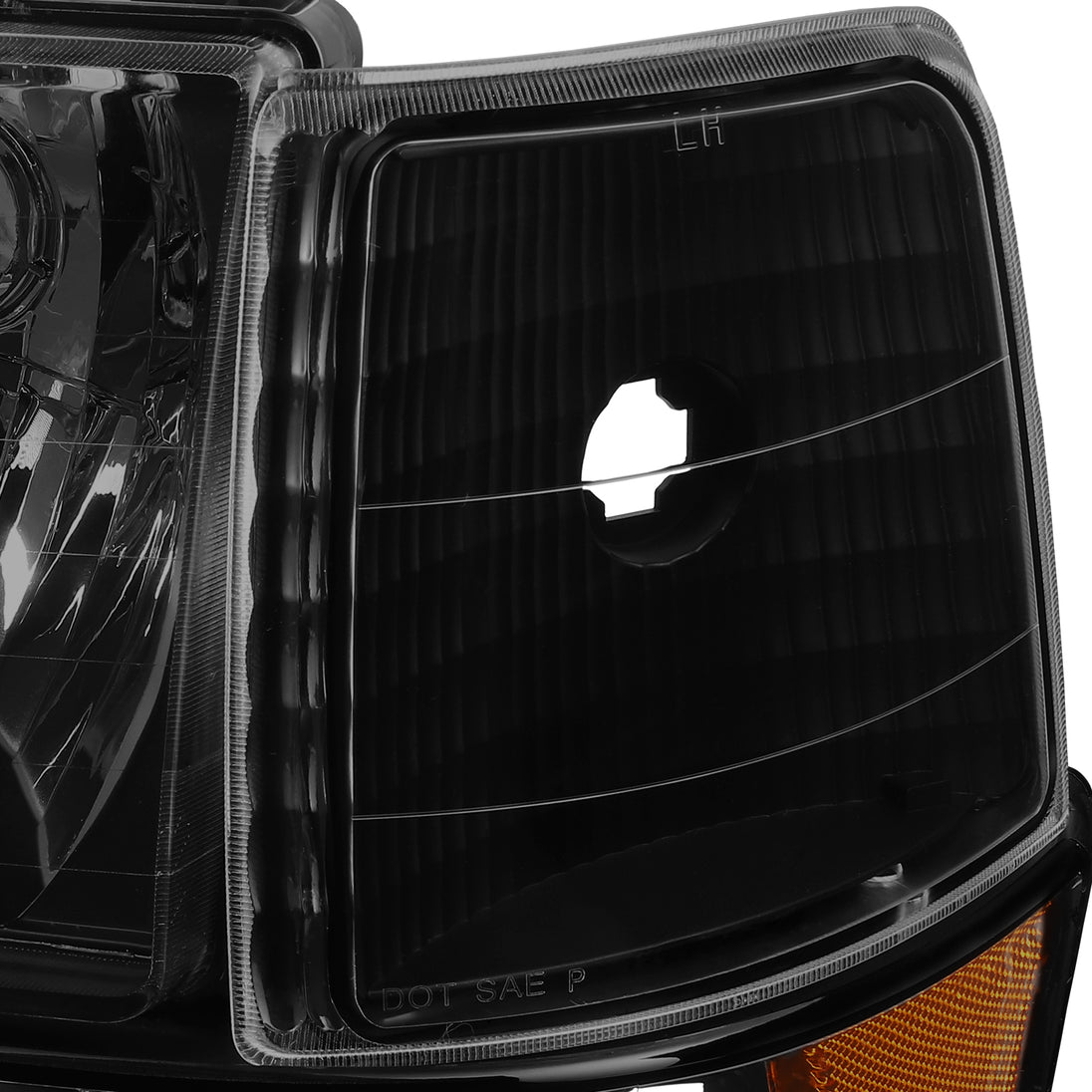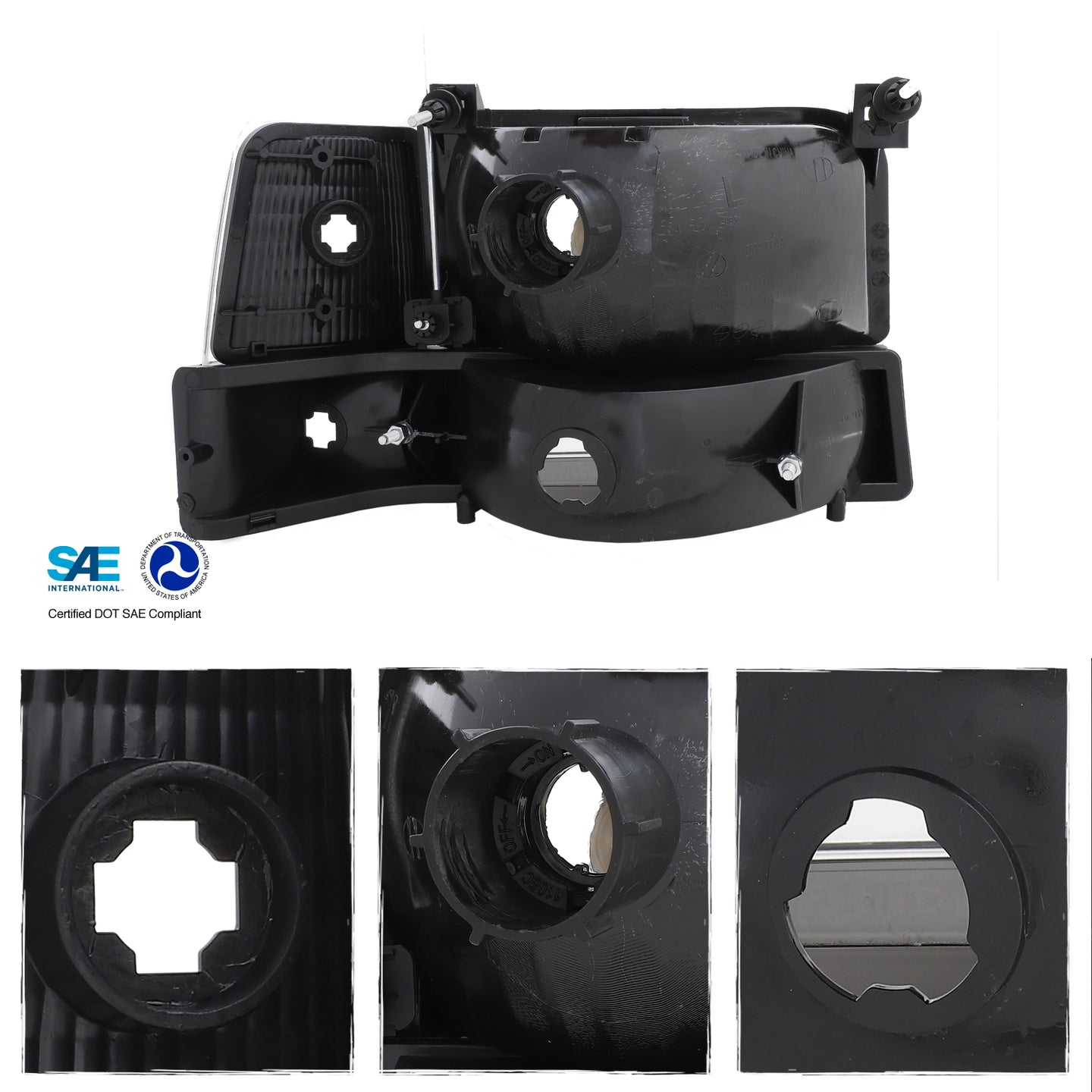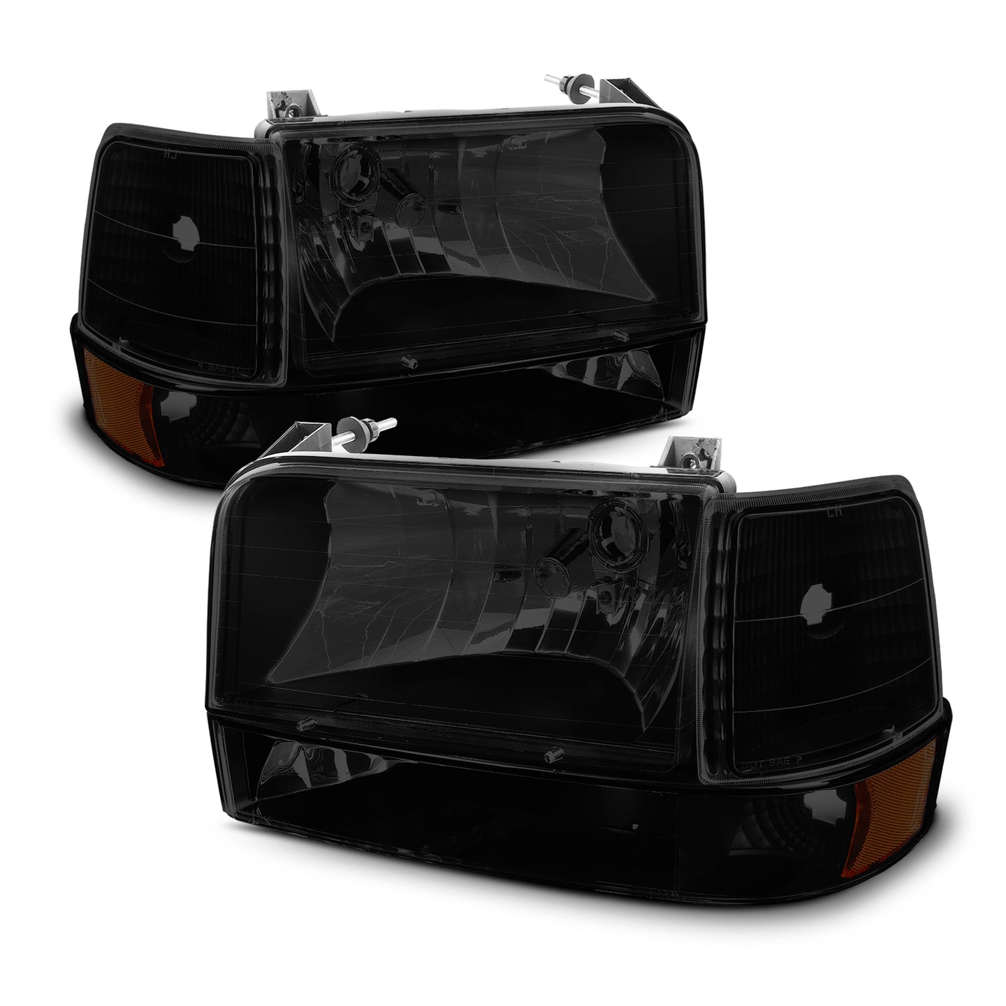 AKKON - For Black Smoke 92-96 Bronco F150 F250 Headlights Replacement + Corner Bumper Signal Lamps 6pcs Set
