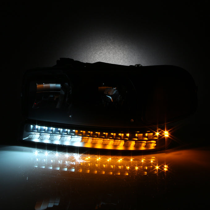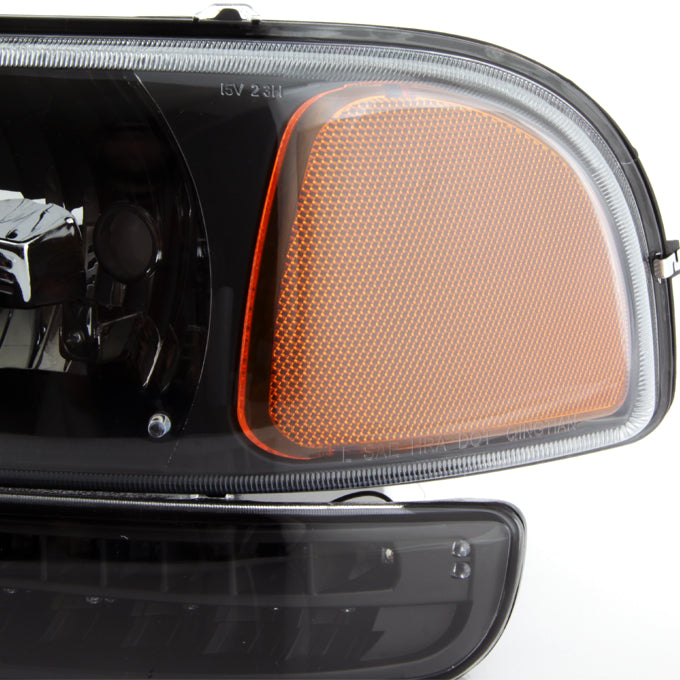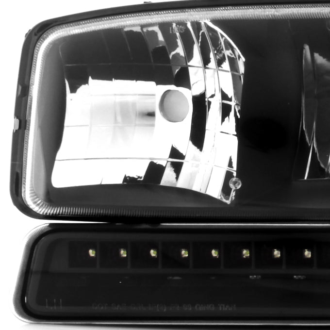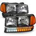AKKON - For Black Bezel 99-06 Sierra 00-06 Yukon Headlights Replacement + LED Bumper Signal Light Lamps Set