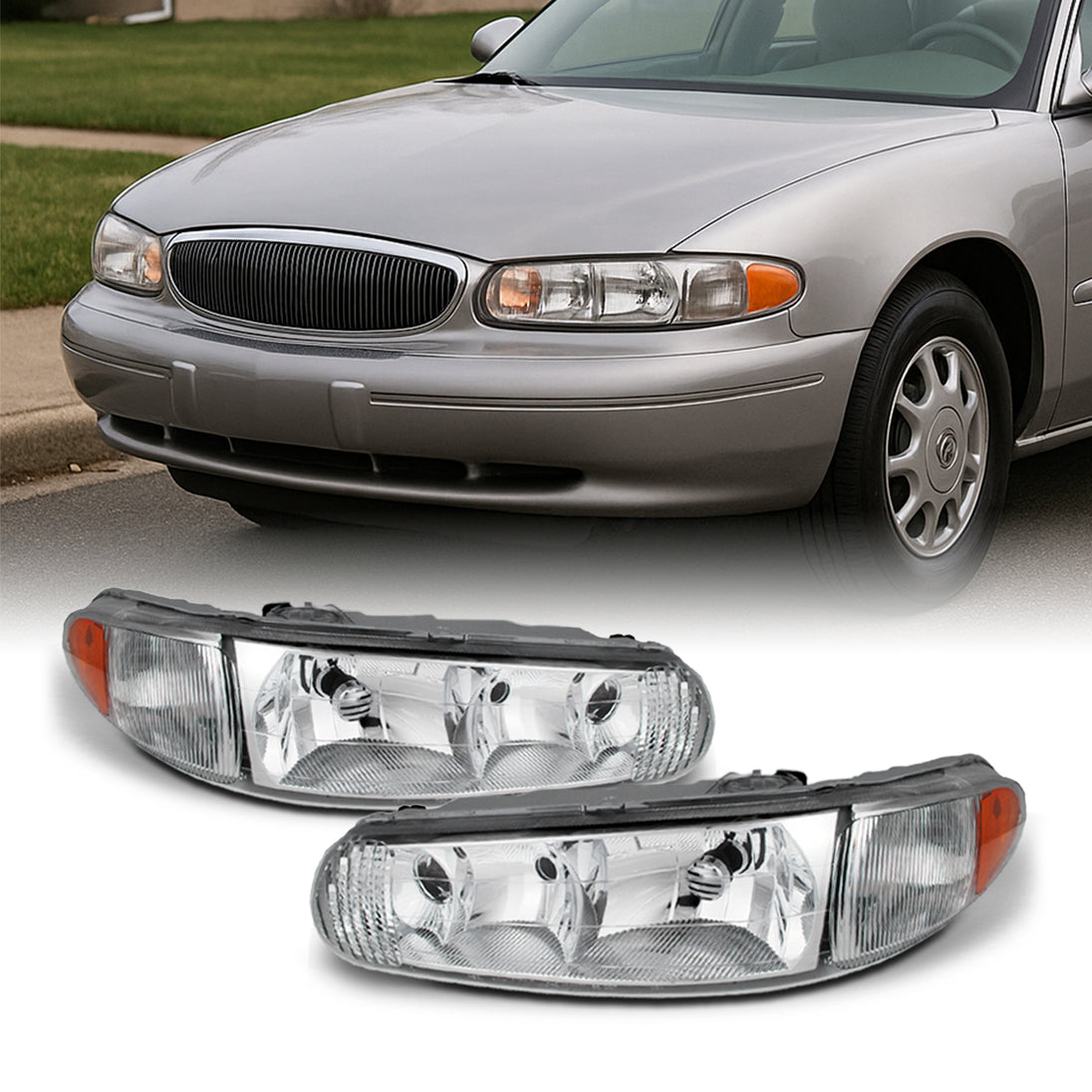 AKKON - For Buick Century/Regal OE Replacement Chrome Bezel Headlights Driver/Passenger Head Lamps Pair New