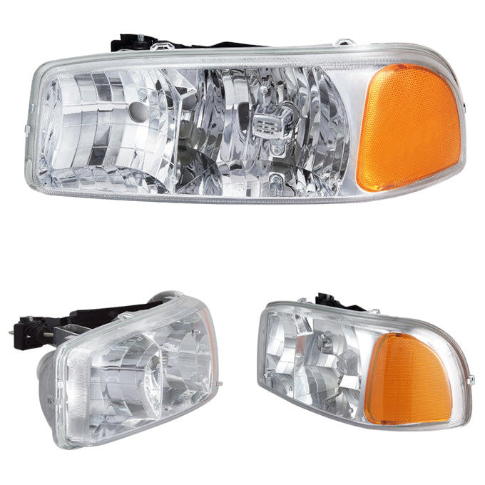 AKKON - For 99-06 Sierra 00-06 Yukon Chrome Clear Headlights Replacement + Bumper Signal Light Lamps 4pcs Set