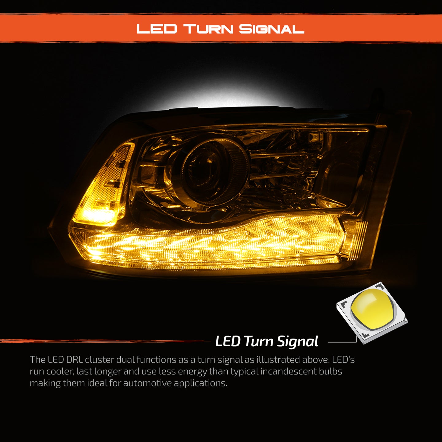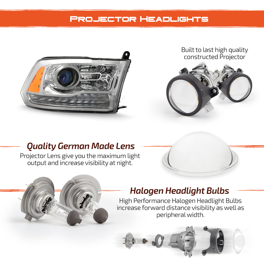 AKKON - For 2013-2015 Ram 1500 / 2500 /3500 OE Projector Chrome Headlights with LED DRL - Right Passenger Side