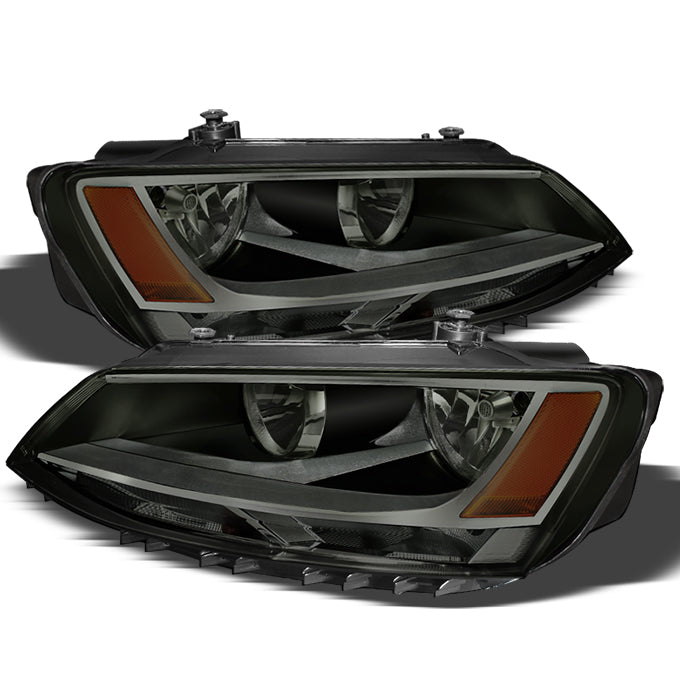 AKKON - For Smoked Smoke 11-18 VW Jetta Headlights Front Lamps Direct Replacement Left + Right Pair