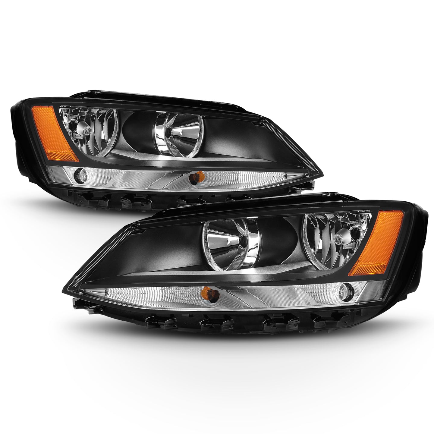 AKKON - For Black Bezel 11-18 VW Jetta Headlights Front Lamps Direct Replacement Left + Right Pair