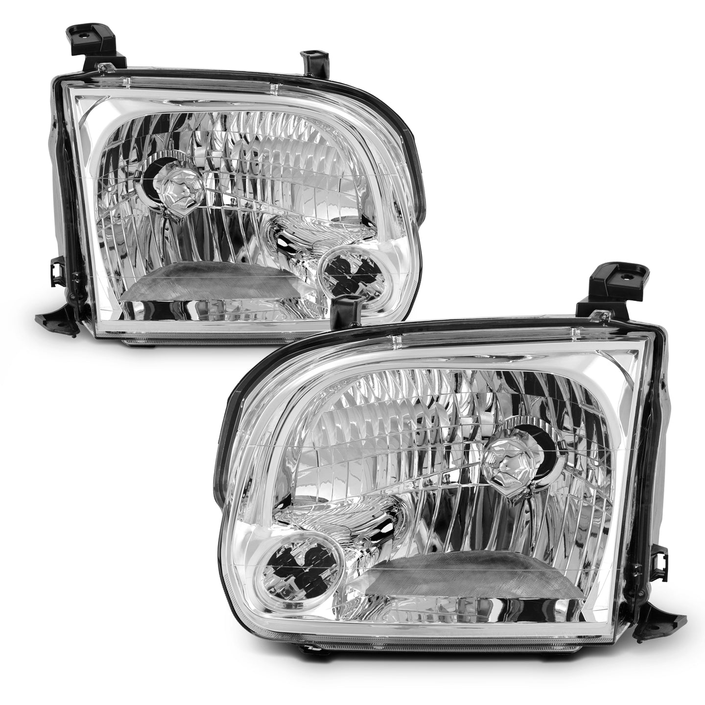AKKON - Fits 2005 2006 Tundra 05 06 07 Sequoia Crew Cab Model Chrome Headlights Driver Left + Passenger Right Pair
