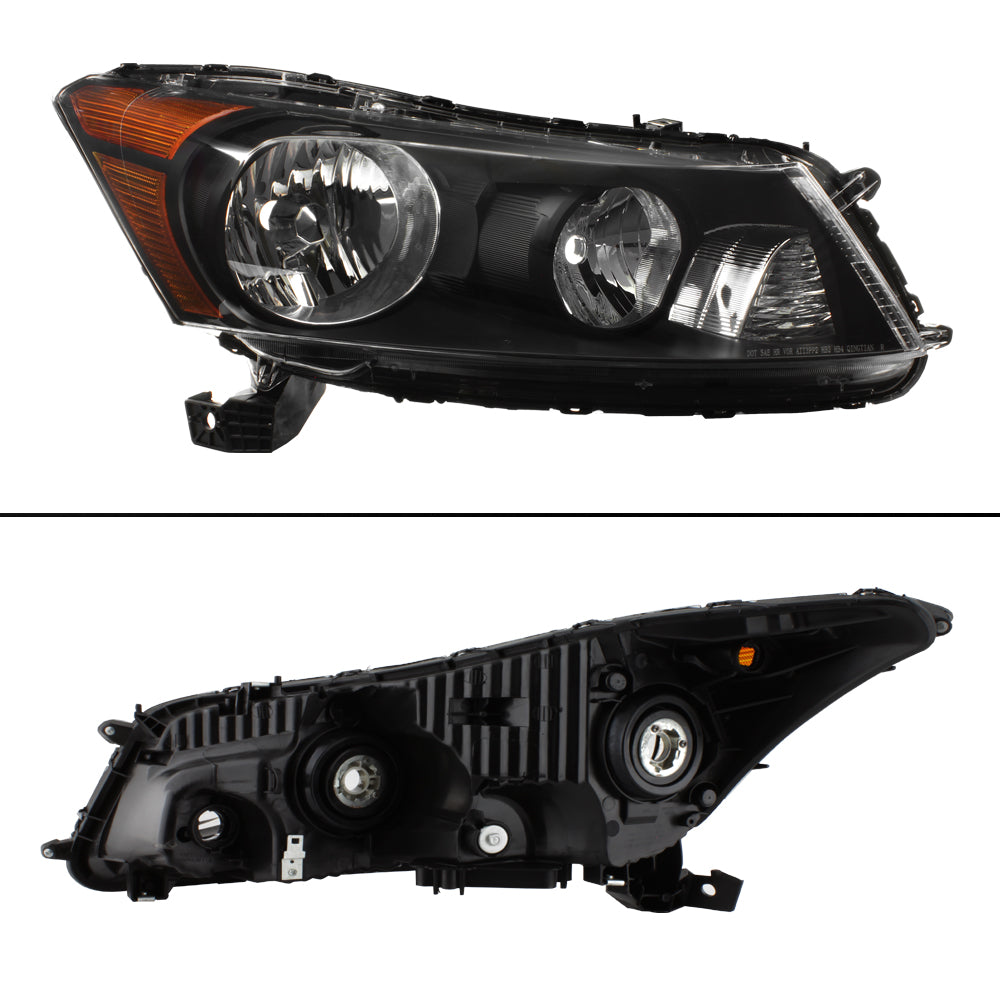 AKKON - For 2008 2009 2010 2011 2012 4-Door Sedan Honda Accord Black Bezel Driver & Passenger Side Headlights lamps