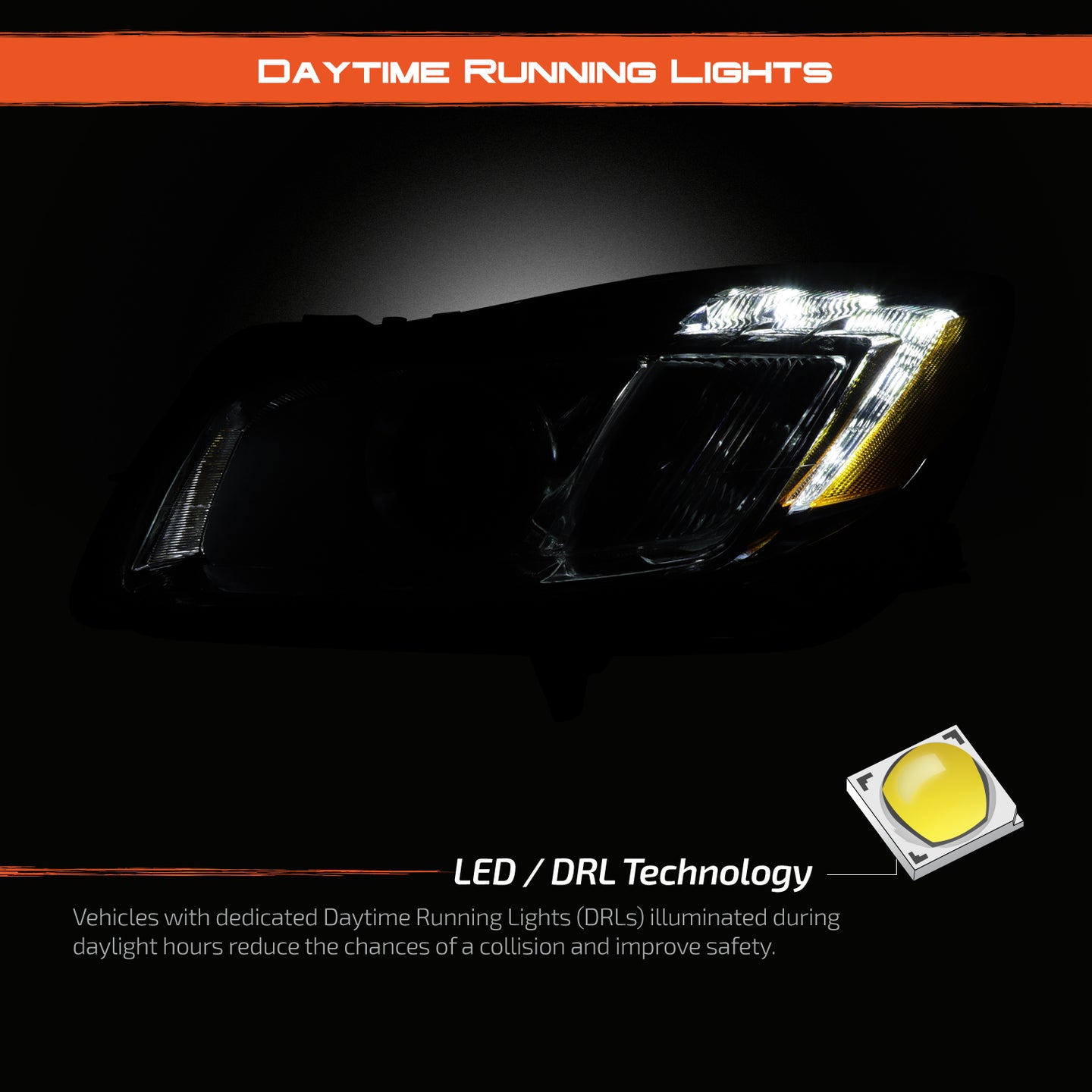 AKKON - Fits 2011-2013 Buick Regal [HID Type] Projector [Clear Ring] Black Headlight Driver Left w/ LED DRL Running Lamp