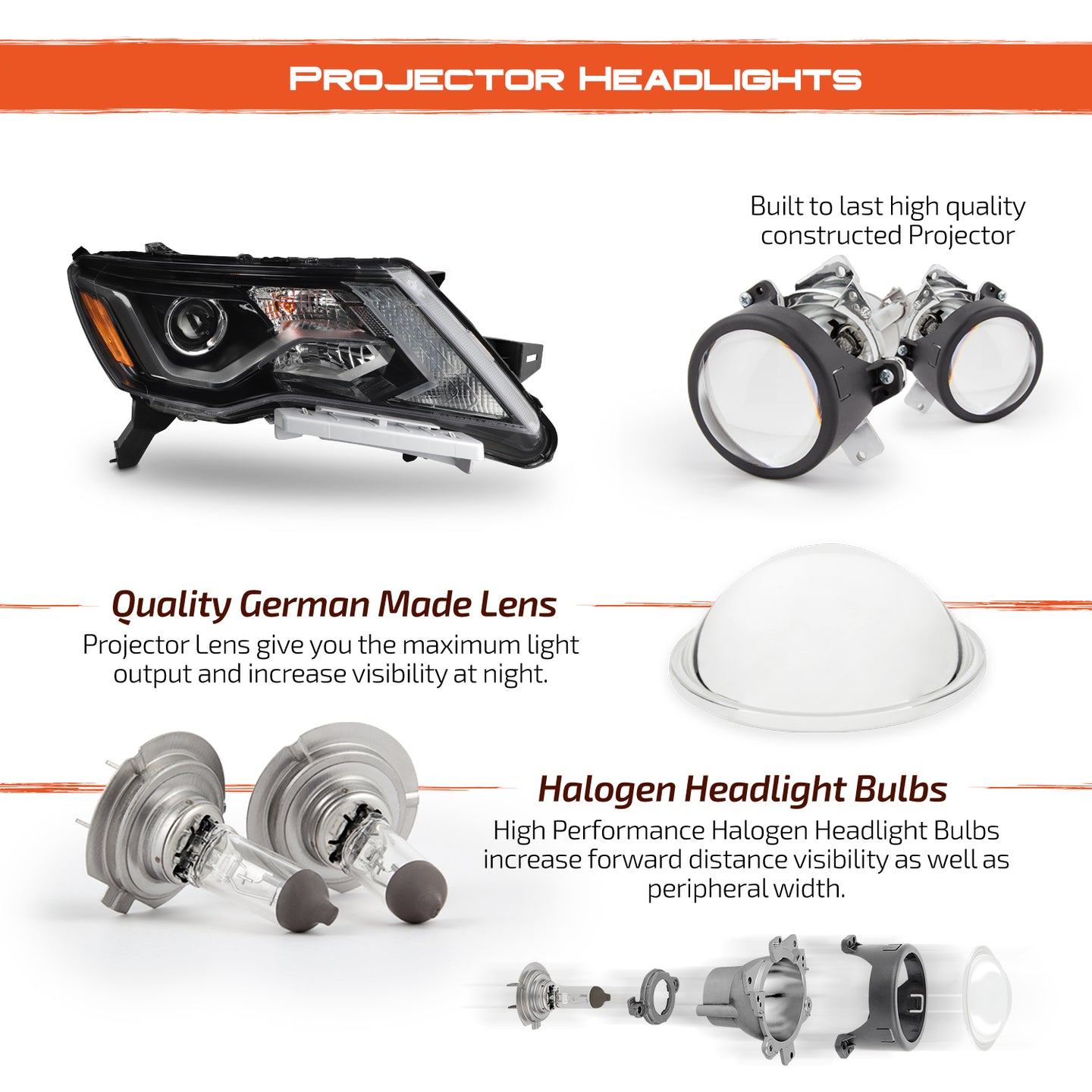 AKKON - Fit 2017 2018 2019 2020 Nissan Pathfinder LED DRL Projector Headlight Headlamp Driver + Passenger Replacement