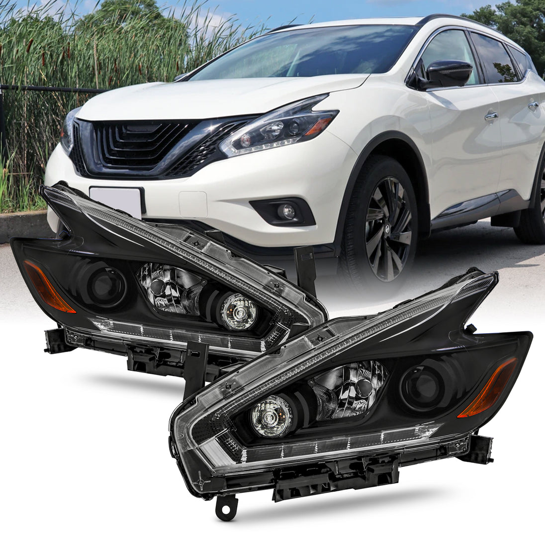AKKON - Fit 2015 2016 2017 2018 Nissan Murano 15-18 Halogen w/LED DRL Projector Headlight Driver Passenger OE Style Black Headlamp Replacement