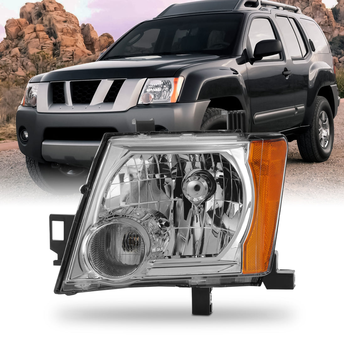 AKKON - Fit 2005-2015 Nissan Xterra 05-15 OE Style Halogen Type Headlight Headlamp Assembly Chrome Housing Left Side Driver Replacement