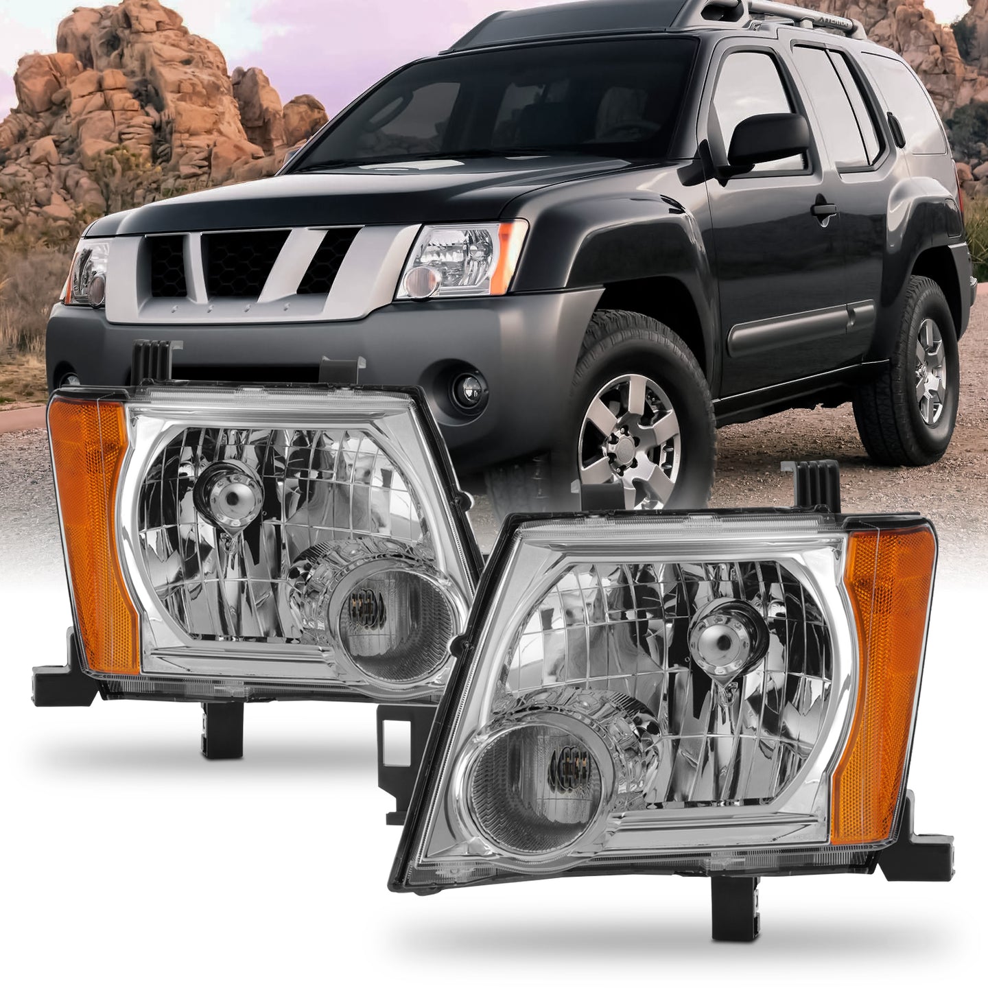 AKKON - Fit 2005-2015 Nissan Xterra 05-15 OE Style Halogen Type Headlight Headlamp Assembly Chrome Housing Driver - Passenger Replacement