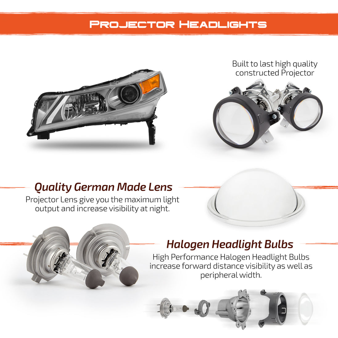 AKKON - Fit 2009 2010 2011 Acura TL [HID|Xenon] Projector Headlight Headlamp Driver Left Side OE Style Chrome Housing Direct Replacement