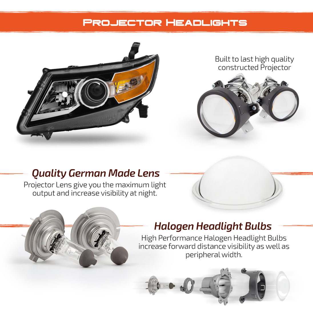 AKKON - Fit 2014 2015 2016 2017 Honda Odyssey 14-17 OE Style Headlight Projector Headlamp Black Housing Driver Left Side Direct Replacement
